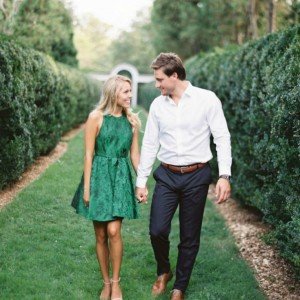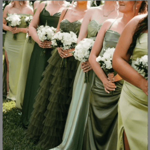 Conforme entregue no Manual de Padrinhos, o traje escolhido é social, com tema de cores em tons de verde claro a verde musgo para as madrinhas e terno preto para os padrinhos.